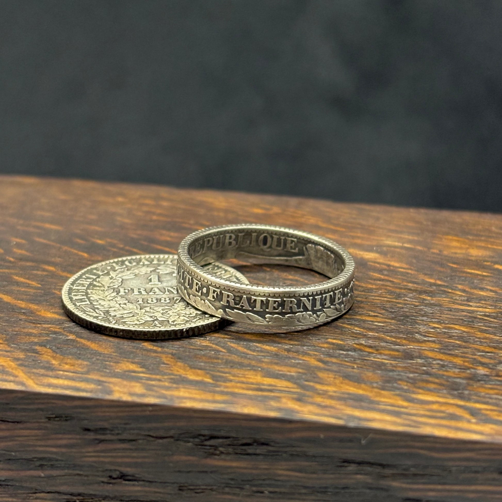 Réalisée à partir d’une authentique 1 Franc Cérès (1871-1895), cette bague unique célèbre l’héritage français avec l’inscription « Liberté, Égalité, Fraternité » à l’extérieur et le portrait de Cérès, déesse romaine des moissons et symbole de prospérité, gravé au cœur de l’anneau.