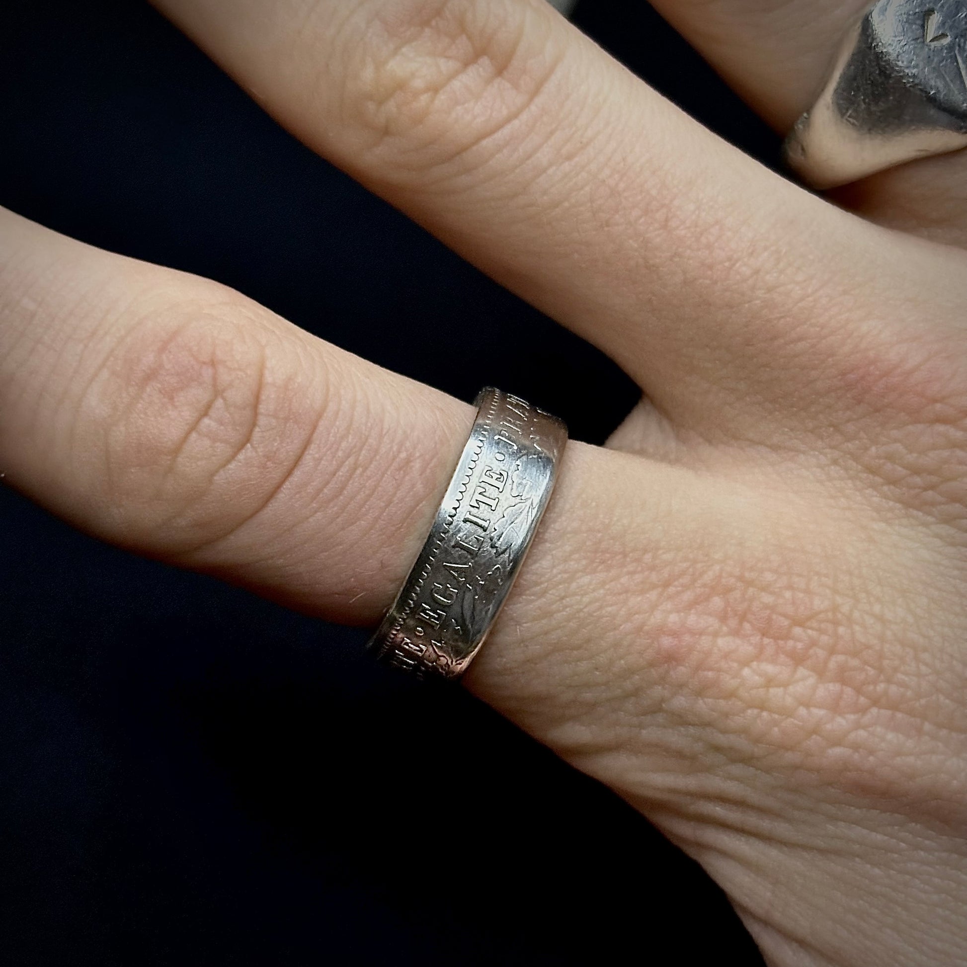 Réalisée à partir d’une authentique pièce de 2 Francs Cérès (XIXᵉ siècle), cette bague unique met en valeur le visage de Cérès, déesse des moissons et de l’abondance, sur l’extérieur de l’anneau. À l’intérieur, vous retrouvez les détails gravés de la pièce, témoins d’un riche héritage français.